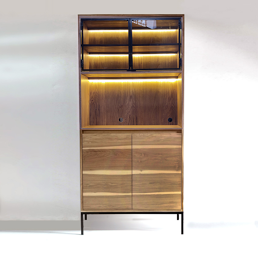 2  Estantes superiores con iluminacion led, 1 sector de Estacion de Café   y 1  seccion inferior con 1 estante interno